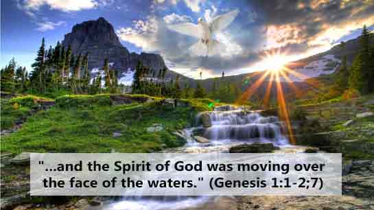 "and the Spirit of God was moving over the face of the waters" (Genesis 1:1- 2:7).