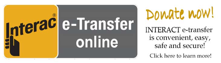 You can donate online using E-transfer (if you are banking online), or your credit card (secured thru PayPal), or mail us a cheque.