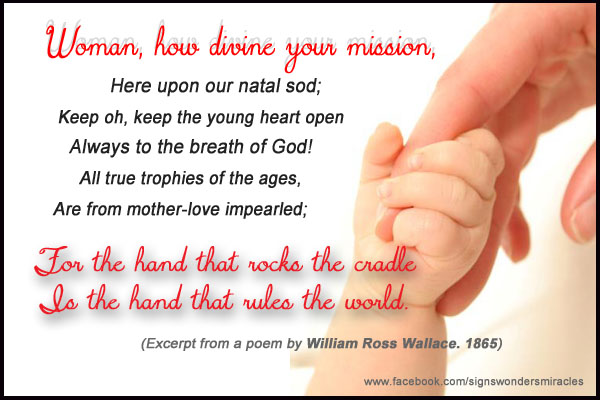 Paul tells us that our homes are mini-churches (Eph. 5:32) where we can learn to do the ministry of the Holy Spirit. Guided by Spirit-led mothers, we can grow together using the Gifts (of the Holy Spirit) every day; praying in the Spirit (Eph. 6:18), "that you may prosper and be in good health, even as your soul prospers” (3 Jn. 2). It can be said of a Christian woman, "the hand that rocks the cradle rules the world.”